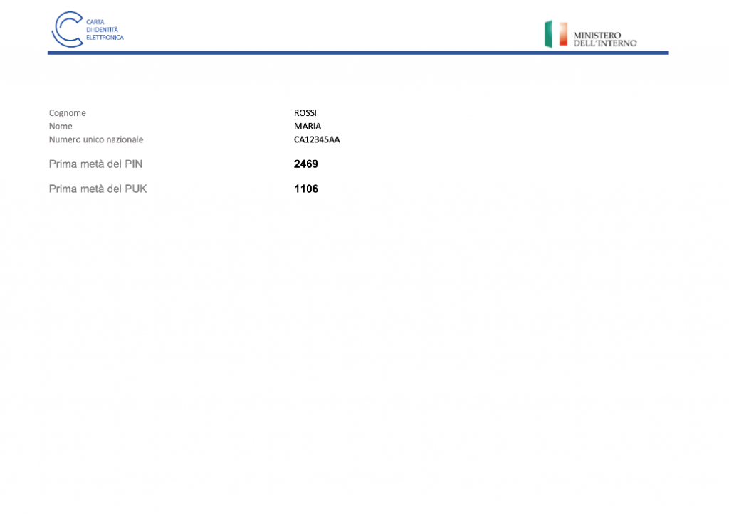 Ricevuta PIN e PUK